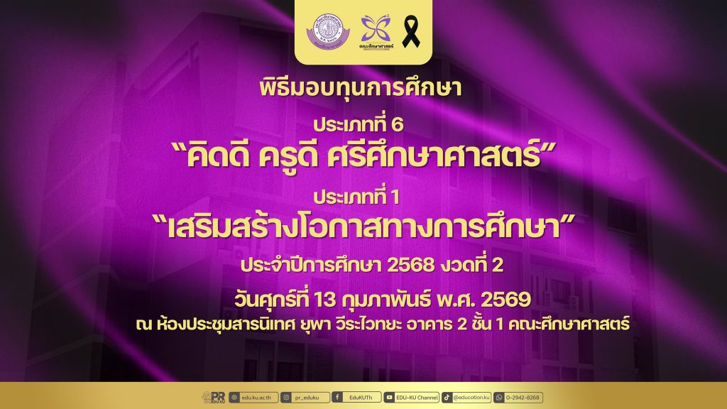 คณะอนุกรรมการกองทุนพัฒนานิสิตคณะศึกษาศาสตร์ มหาวิทยาลัยเกษตรศาสตร์ จัดพิธีมอบทุนสนับสนุนการศึกษา ประเภทเสริมสร้างโอกาสการศึกษา ประจำปีการศึกษา 2568 งวดที่2″ โดยได้รับเกียรติจาก